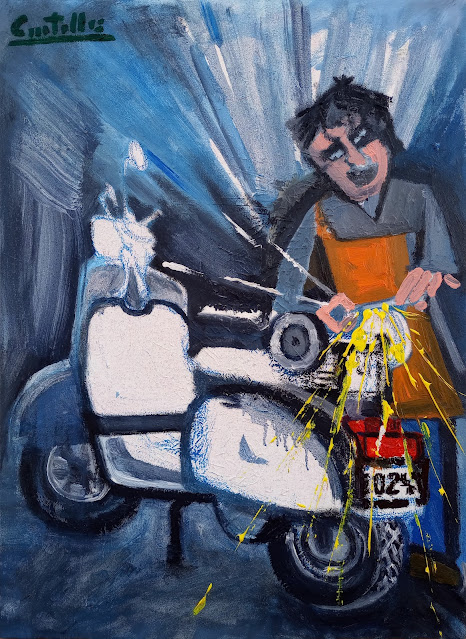 His paintings have a unique and very personal style based, above all, on the observation of everyday scenes. The artist knows how to portray these situations with a certain irony and with a subtle sense of humor.